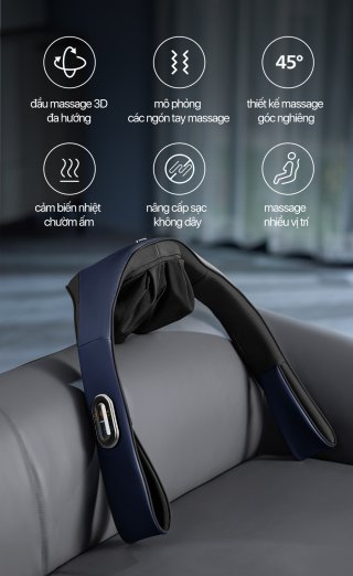 Sản phẩm sử dụng 6 đầu massage 3D mô phỏng động tác xoa bóp của bàn tay con người, kết hợp chức năng chườm ấm khoảng 42°C, giúp làm dịu nhanh vùng cơ căng cứng, mang lại cảm giác thư giãn sâu và dễ chịu. Máy có thể dùng không dây với pin sạc tích hợp hoặc cắm nguồn trực tiếp, thuận tiện sử dụng tại nhà, văn phòng hoặc khi nghỉ ngơi.